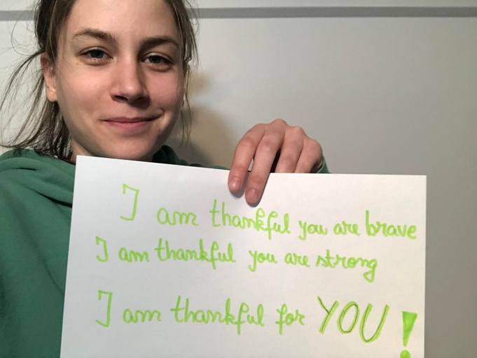 Finally, I compiled the messages into a presentation, accompanied by pictures of the alumni holding what they had written. I shared the presentation with contacts at Beacon of Hope, who then distributed the presentation to all the survivors with whom they work.